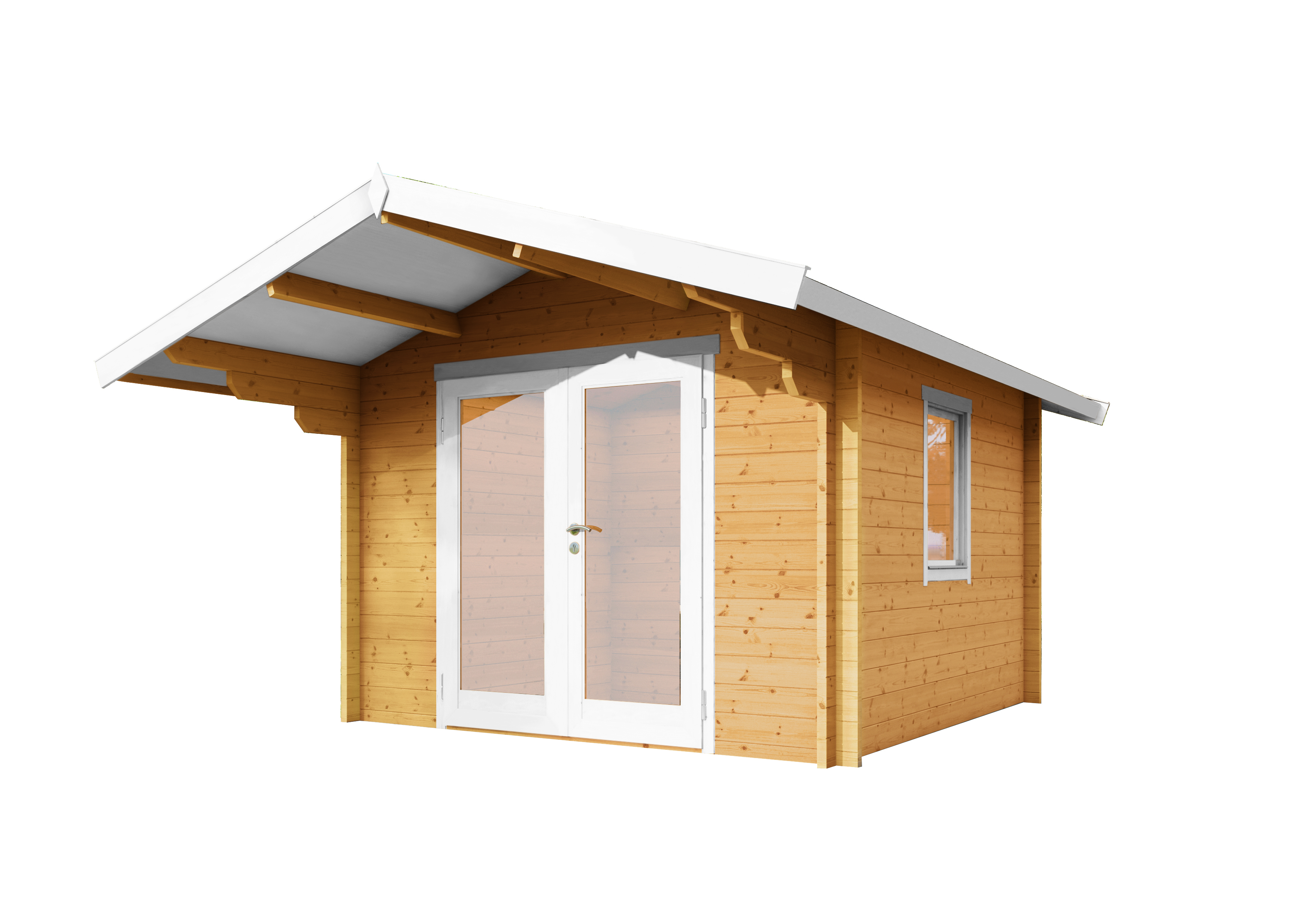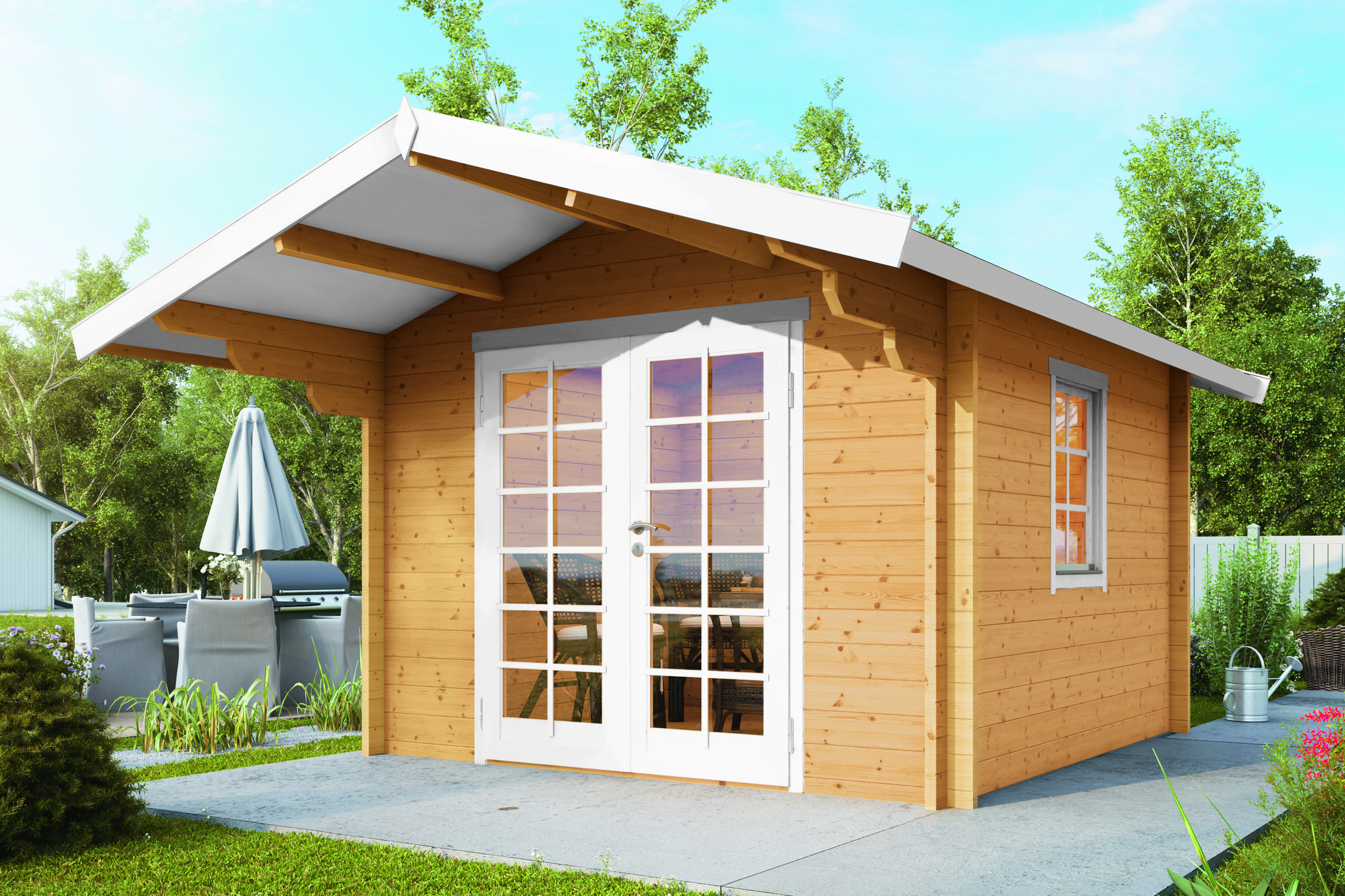 Das Holz-Gartenhaus Betty 3025 Fichte überzeugt mit seinem kompakten Charme. Denn dank seiner Grundfläche von etwas über 7 Quadratmeter passt es auch in kleinere Gärten. Seine bodentiefen Fenster in der Doppeltür sorgen für jede Menge Tageslicht im Innenraum. Durch ein weiteres Fenster in der Seitenwand schauen Sie in die Natur. Alle Fensterflächen sind isolierverglast. Unter dem großen Vordach sitzen Sie geschützt vor zu viel Sonne. Mit einem guten Buch und Ihrem Lieblingsgetränk. Herrlich! Betty 3025 erhalten Sie ab Werk im Farbton Fichte vorbehandelt.