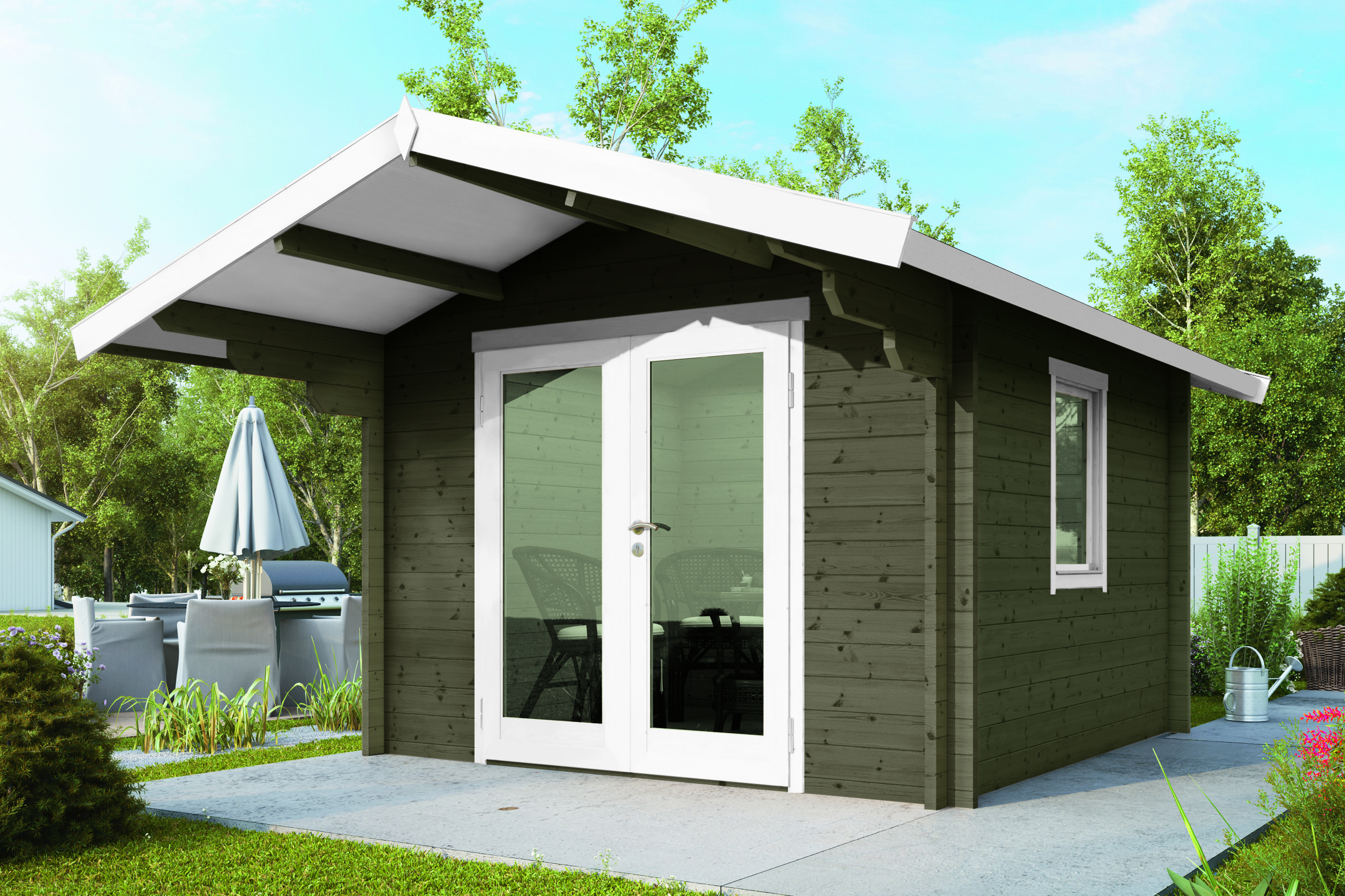 Das Holz-Gartenhaus Betty 3025 Fichte überzeugt mit seinem kompakten Charme. Denn dank seiner Grundfläche von etwas über 7 Quadratmeter passt es auch in kleinere Gärten. Seine bodentiefen Fenster in der Doppeltür sorgen für jede Menge Tageslicht im Innenraum. Durch ein weiteres Fenster in der Seitenwand schauen Sie in die Natur. Alle Fensterflächen sind isolierverglast. Unter dem großen Vordach sitzen Sie geschützt vor zu viel Sonne. Mit einem guten Buch und Ihrem Lieblingsgetränk. Herrlich! Betty 3025 erhalten Sie ab Werk im Farbton Fichte vorbehandelt.