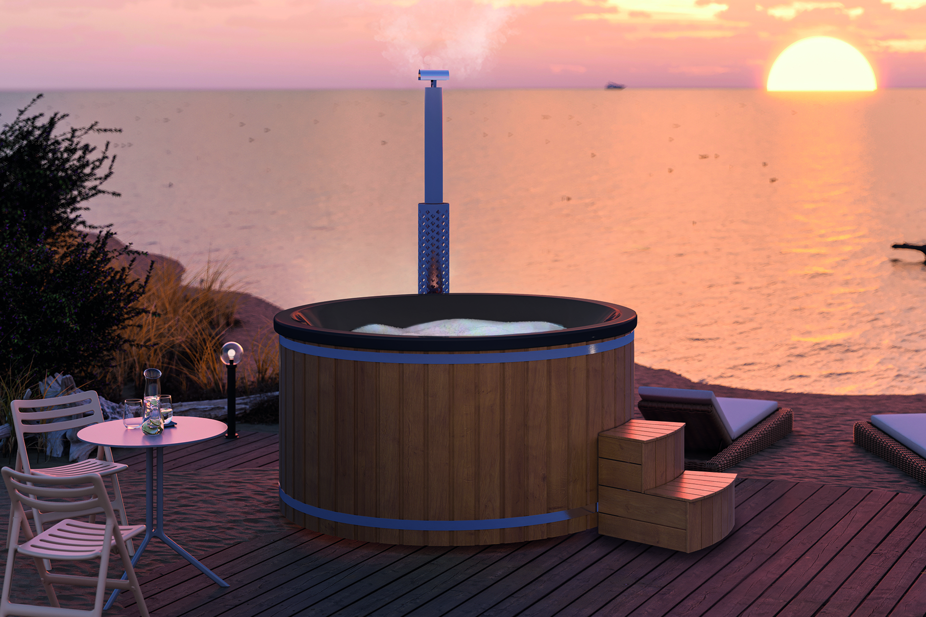 | Artikelbestandteile | Acrylwannenfarbe Schwarz marmoriert integrierter V4A Edelstahlofen mit Ofenrohr (30 kW) Thermoholzverkleidung Treppe Thermoholz Thermoabdeckung Ø 225 cm Braun Wassermassagesystem 16 Luftsystem 12 Multi LEDs Bedienfeld Tub |