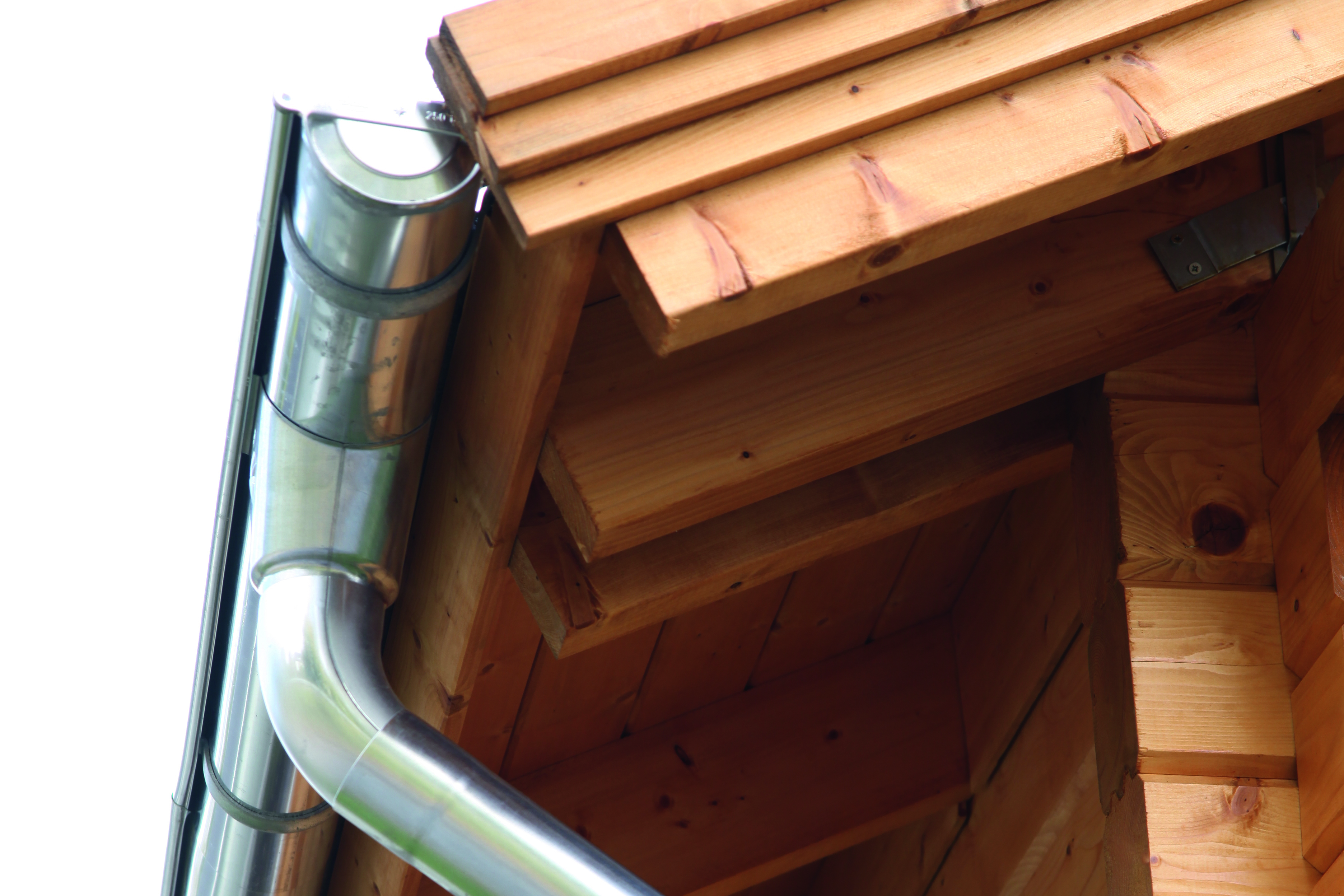 - Aluminium Dachrinne mit zwei Fallrohren