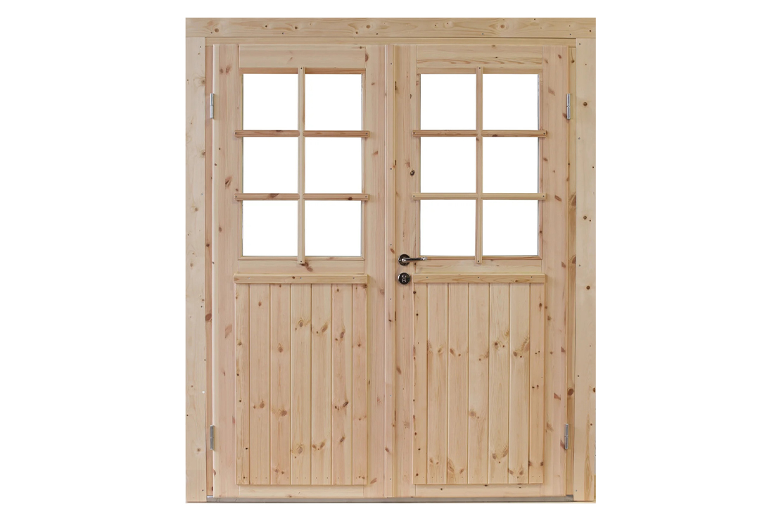 halbverglaste Doppeltür für Gartenhäuser mit 44 mm Wandstärke (isolierverglast).