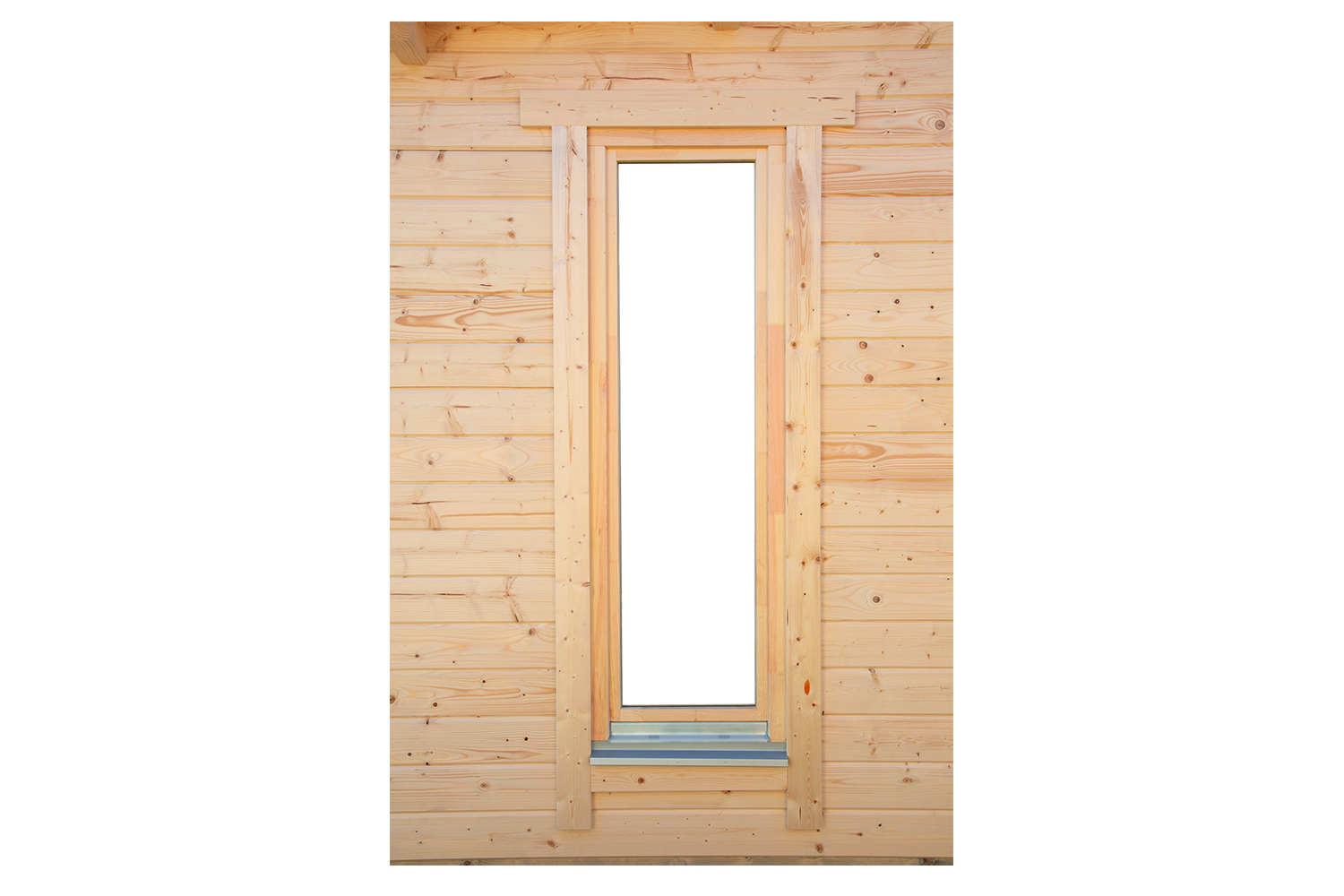 - hochwertiges bodentiefes Leimholz-Einzelfenster für Gartenhäuser mit 70 mm Wandstärke