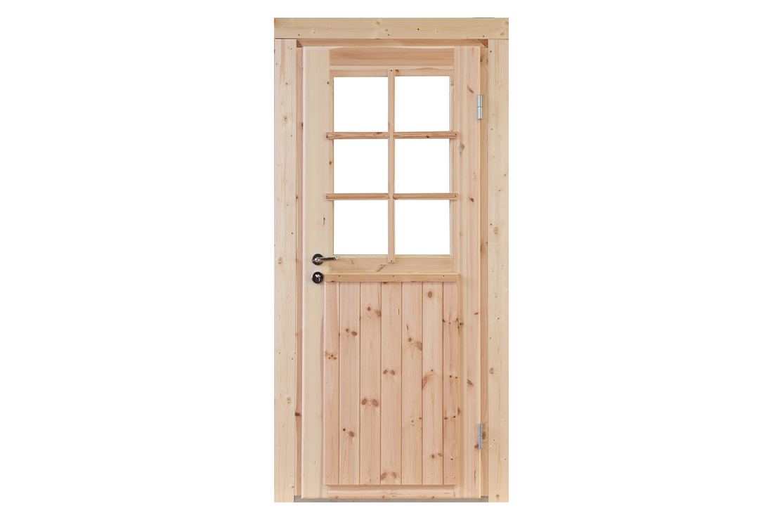 Halbglas-Einzetür Finn für Gartenhäuser mit 28 mm Wandstärke.