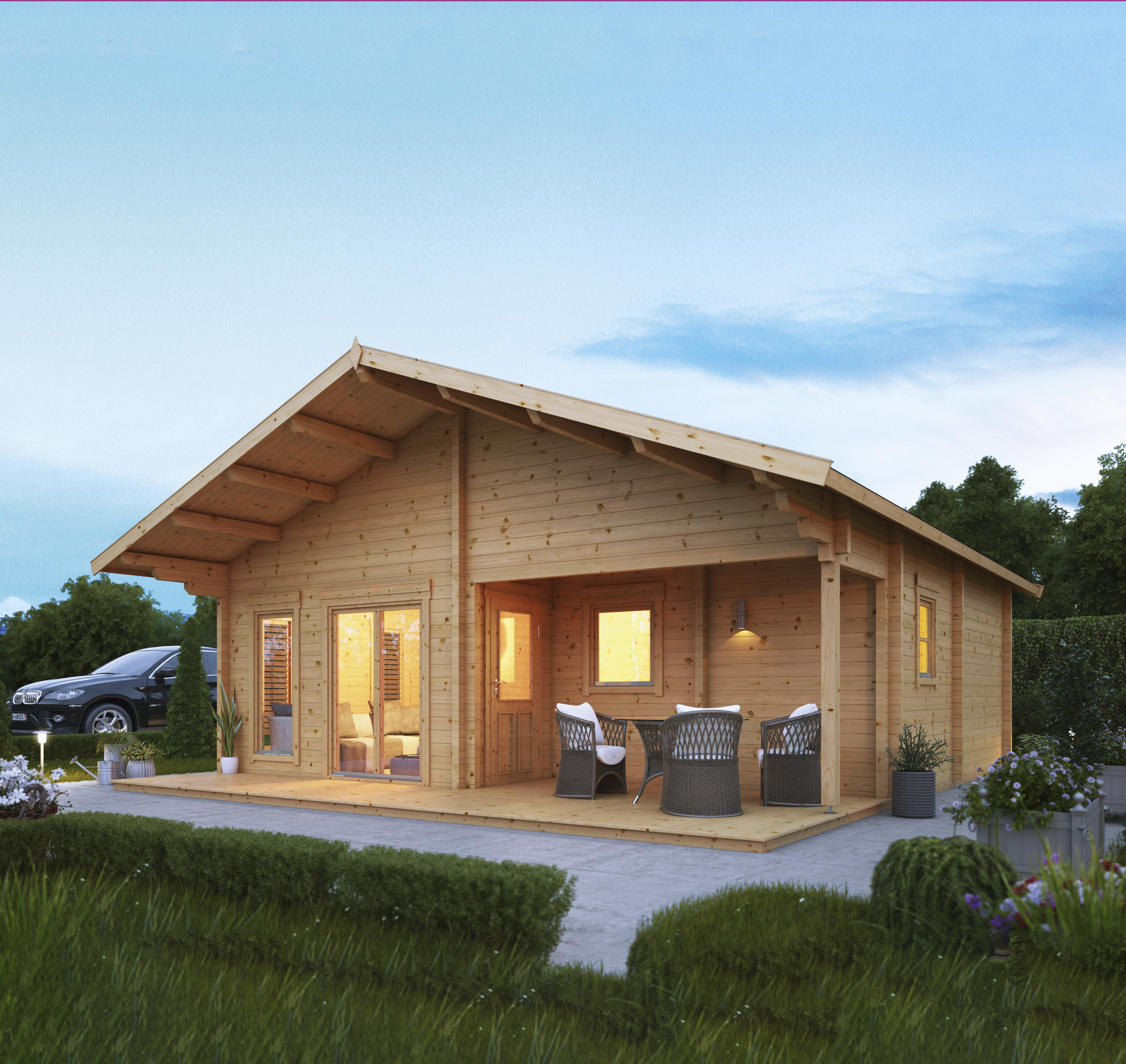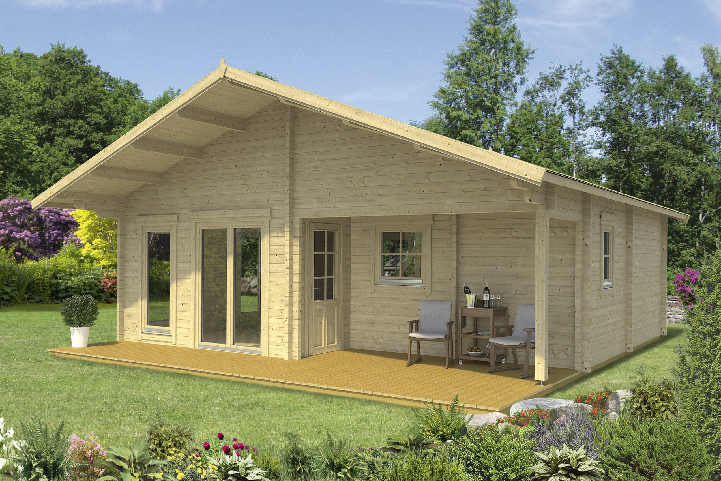 Chillen, Grillen, Arbeiten, Feiern, Kaffeetrinken – alles möglich mit diesem Ferienhaus aus Holz.