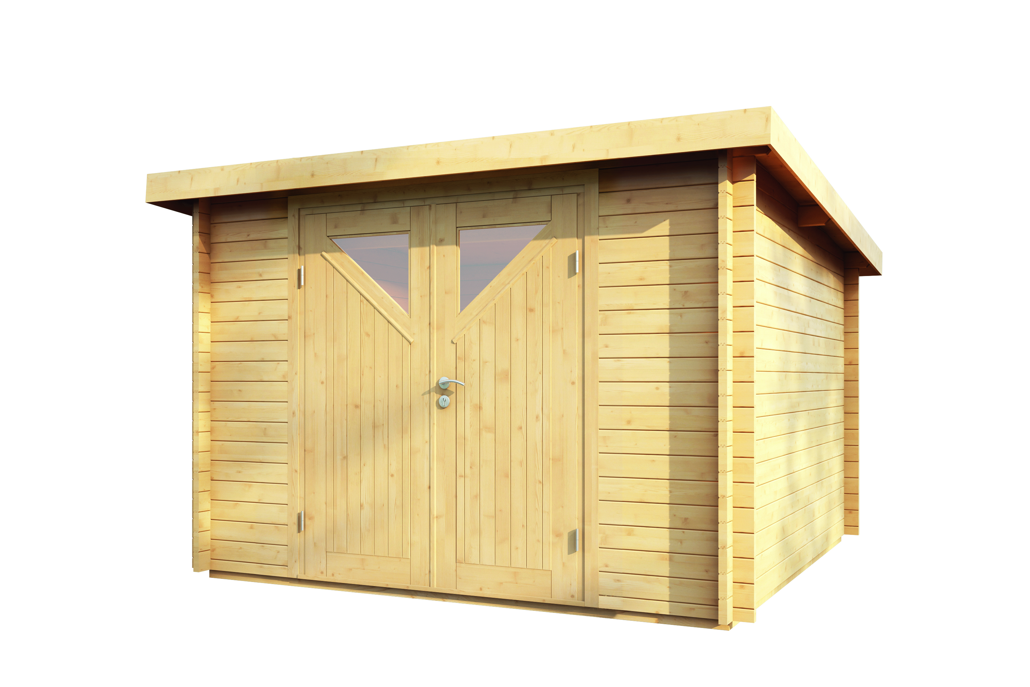 Der Anteil aus Holz verhindert neugierige Blicke. Die robusten nordischen Holzbohlen sind 34 Millimeter stark und verkraften Wind und Wetter zu jeder Jahreszeit. Sie erhalten das Gartenhaus ab Werk naturbelassen. Nach der Montage braucht es einen Anstrich. Ganz individuell nach Ihrem Geschmack.