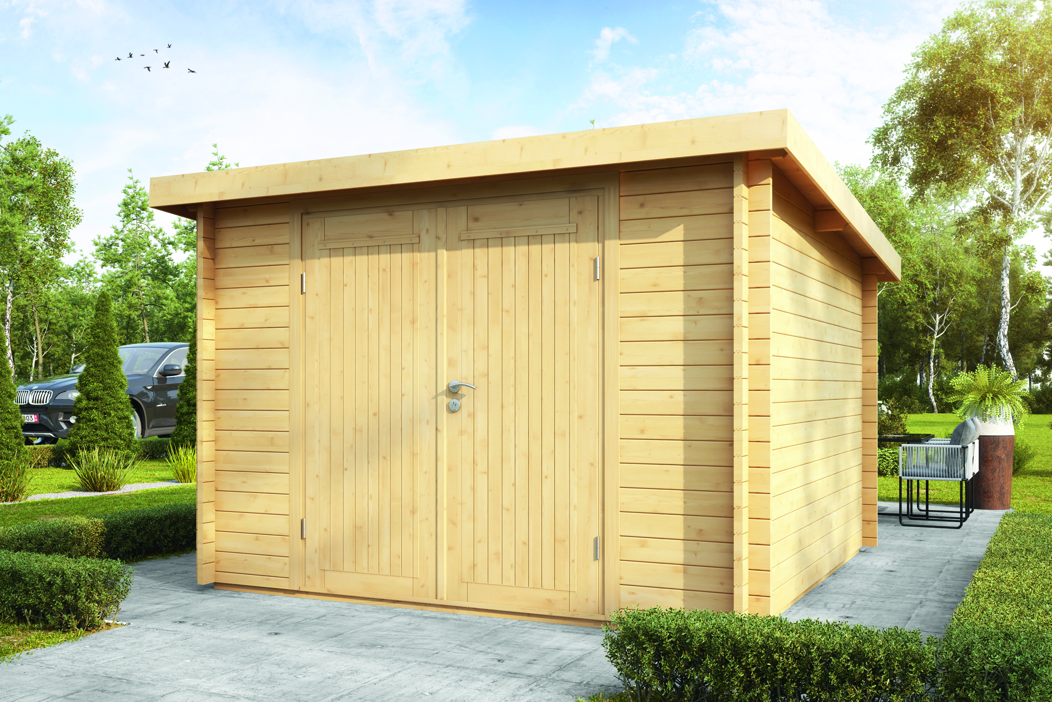 Das robuste nordische Holz verkraftet Wind und Wetter zu jeder Jahreszeit. Wie auch die hochwertige Doppeltür aus Leimholz: Die Vollholz-Tür schützt nicht nur vor neugierigen Blicken. Sobald Sie beide Türflügel öffnen, gelangen auch sperrige Gegenstände bequem ins Haus.