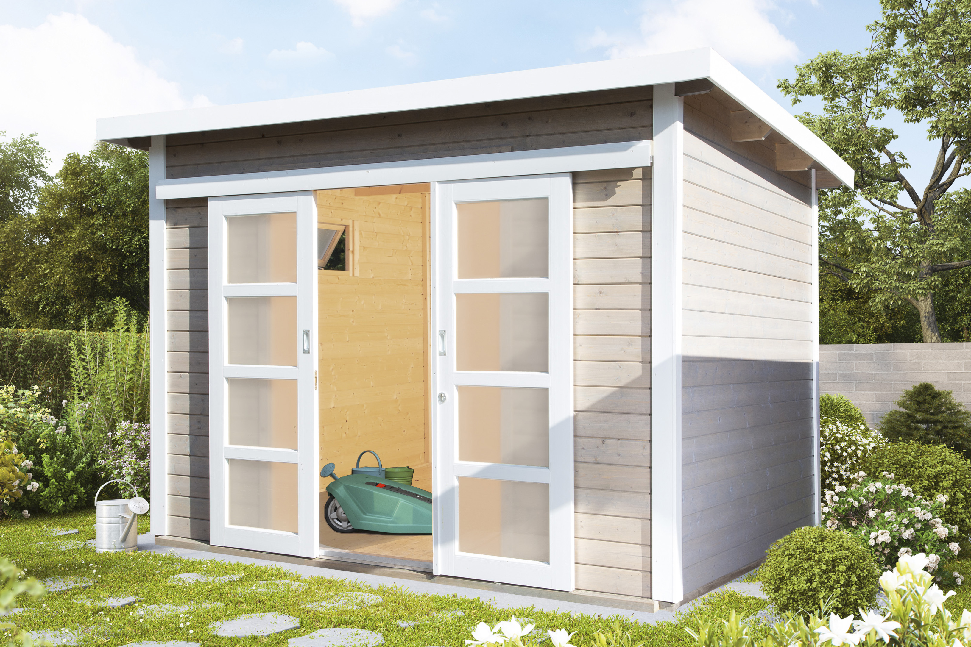 Sie suchen Stauraum für die Gartengeräte, den Tretroller oder die Fahrräder? Das bietet dieses praktische Holz-Gartenhaus auf 9 Quadratmetern Grundfläche. Mit modernem Pultdach und im trendigen Design ist dieses Gartenhaus ein schöner Blickfang. Verstauen Sie Ihre Gartenmöbel, Gerätschaften und Werkzeuge sicher und wettergeschützt. Durch die sehenswerte Schiebetür können Sie auch sperrige Gegenstände problemlos unterbringen. Schaffen Sie sich jetzt neuen Stauraum mit diesem praktischen Gartenhaus.