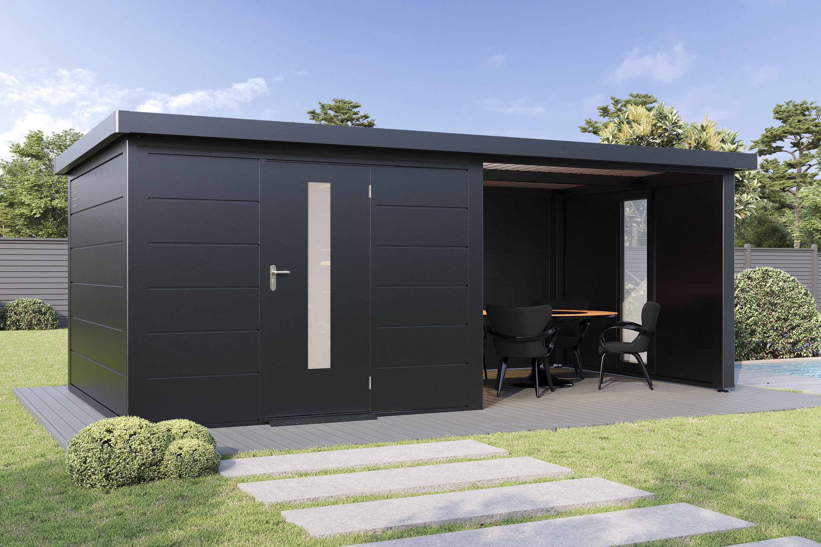 Mehr Schutz, mehr Gemütlichkeit! Die doppelwandige Seitenwand mit Isolierung macht Ihre Terrasse windgeschützt, stabil und noch komfortabler – perfekt für entspannte Stunden im Garten.