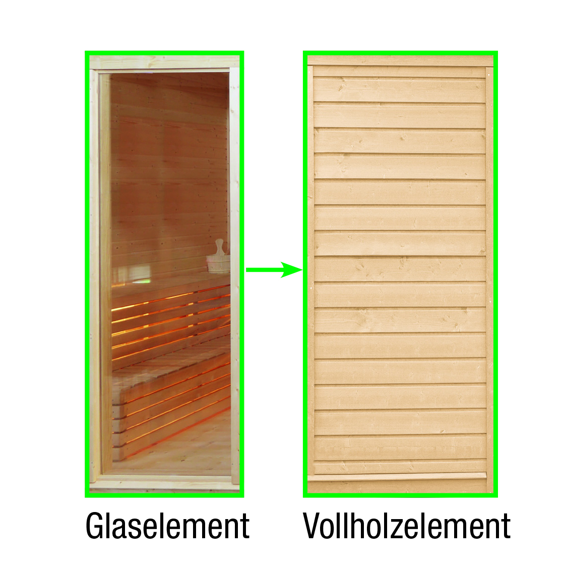 Achtung: Dieses Produkt wurde früher als »Sauna Paradiso: Tausch Glas in Vollholz« oder »Stina: Tausch Glas in Vollholz« gelistet.