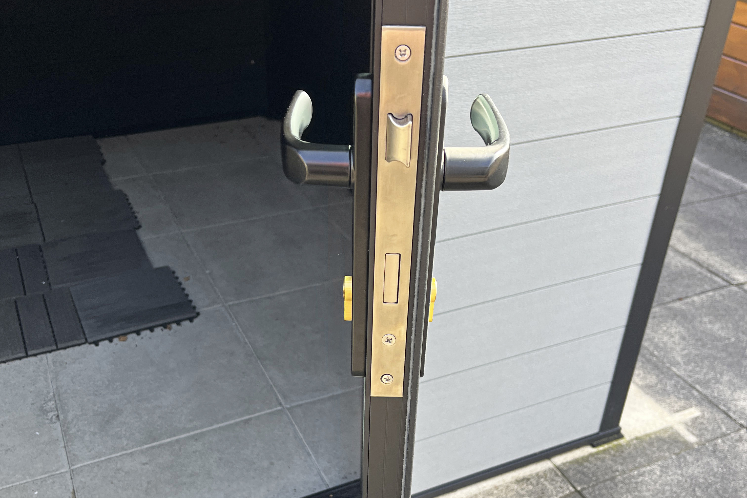 Auf 8,7 Quadratmetern Nutzfläche verstauen Sie alles, was sonst sinnlos herumliegt. Gartenmöbel und Bezüge, Werkzeug, Rasenmäher, Kinderspielsachen – Stauraum ist ausreichend vorhanden. Durch die Aluminium-Doppeltür mit oberem Lichtausschnitt passen auch sperrige Dinge. Die Sie mit allem anderen sicher im Gartenhaus aus WPC verwahren.