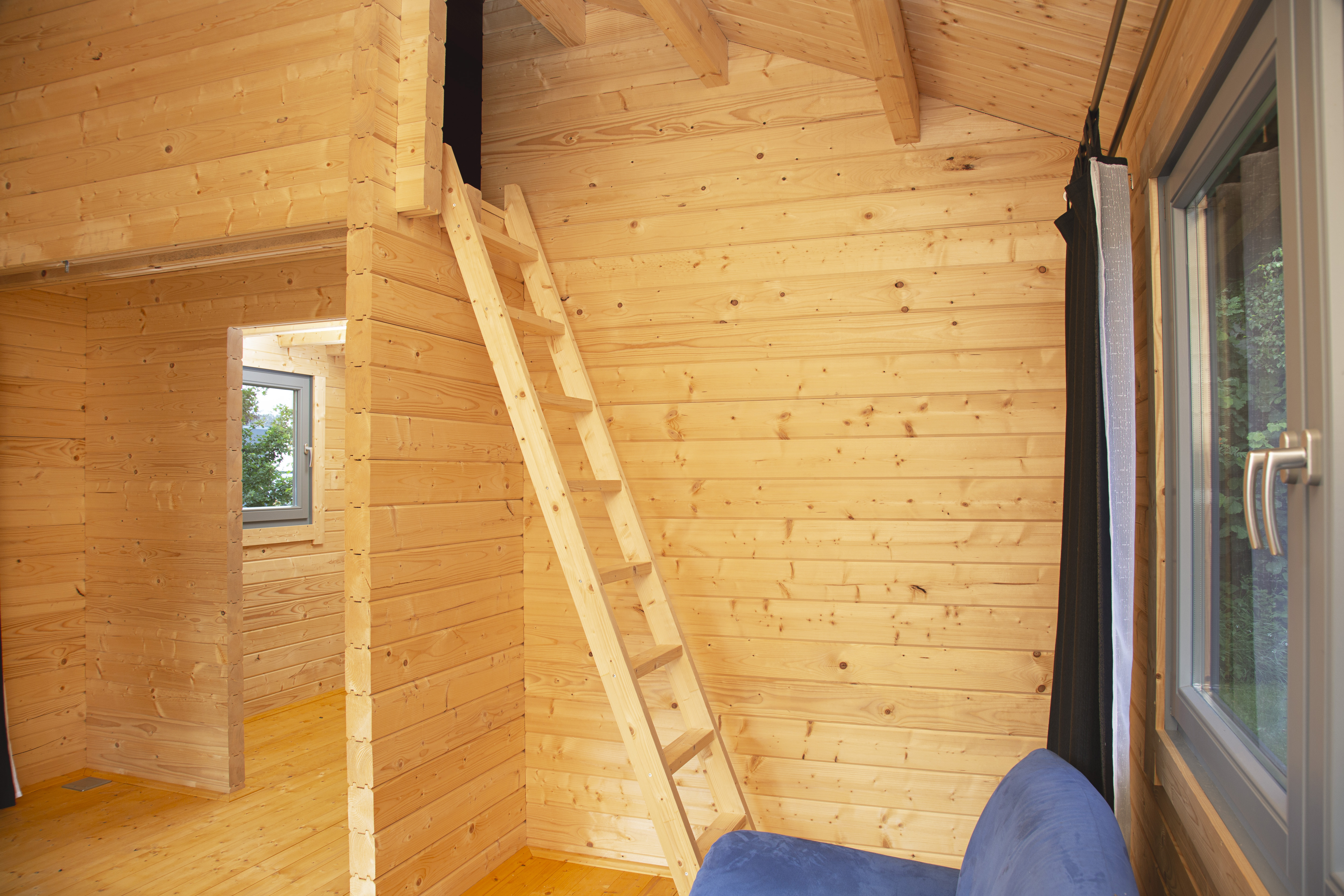 Die isolierverglasten Dreh-Kipp-Fenster des Ferienhauses aus Holz halten die Wärme im Haus und schützen vor Kälte. Wie die verglaste Doppeltür aus Leimholz lassen sie angenehmes Tageslicht in die 3 Räume. Die Sie jederzeit individuell einrichten können.