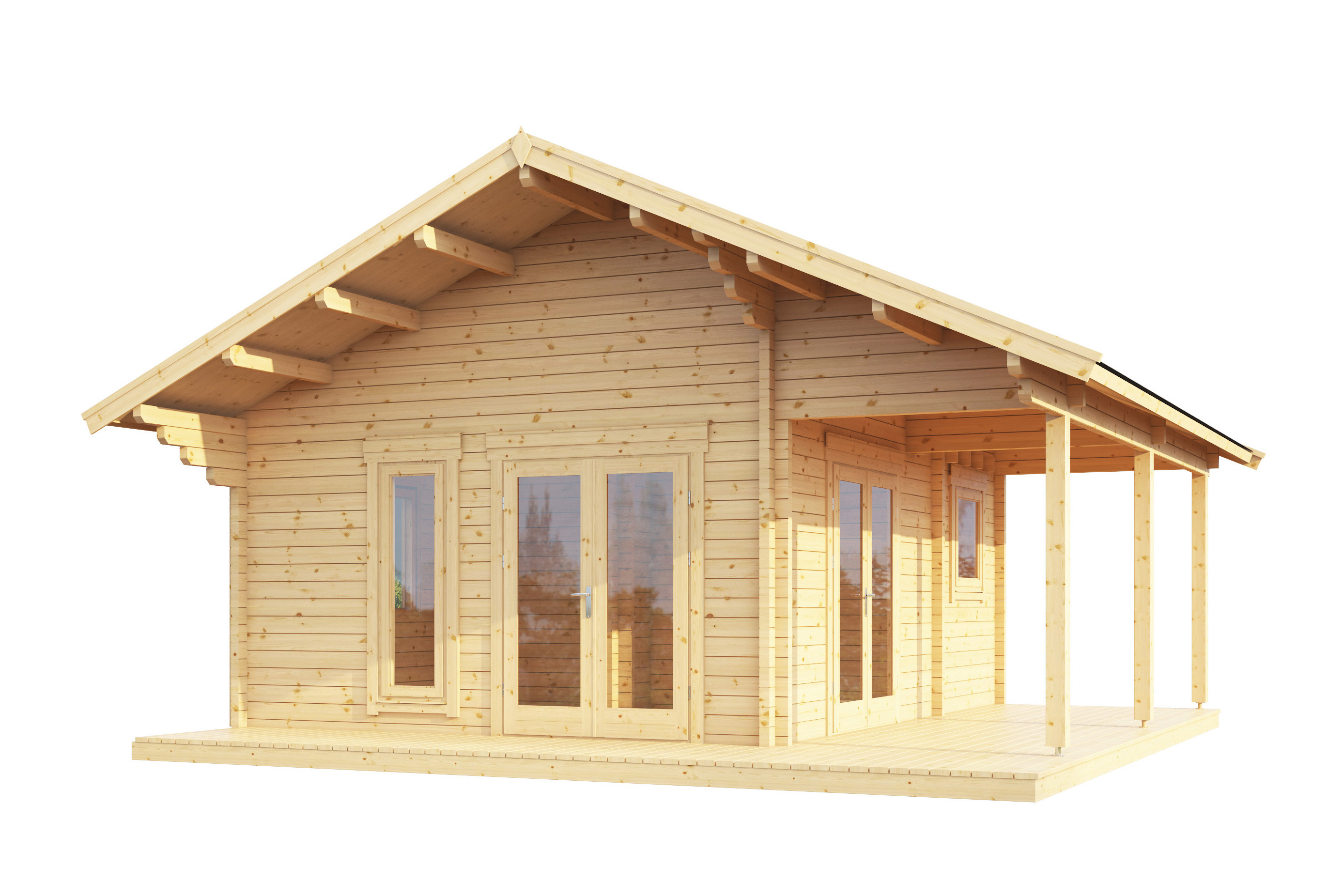 Dieses Ferienhaus aus 70 Millimeter starken Blockbohlen ist ein echter Hingucker. Wie gemacht für die Berge, das Grundstück am See oder in Strandnähe, als Jagdhaus oder Gästeunterkunft.
