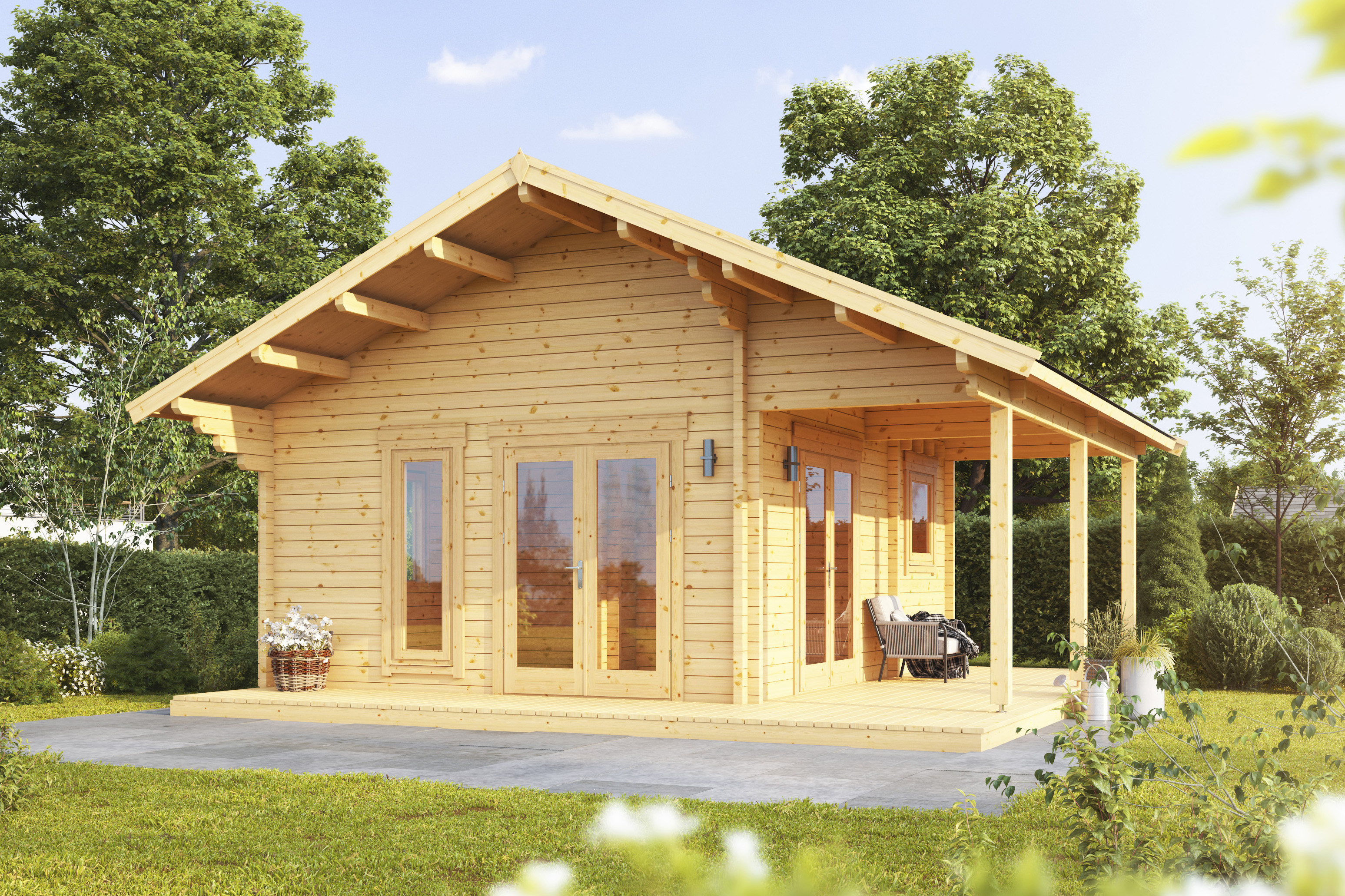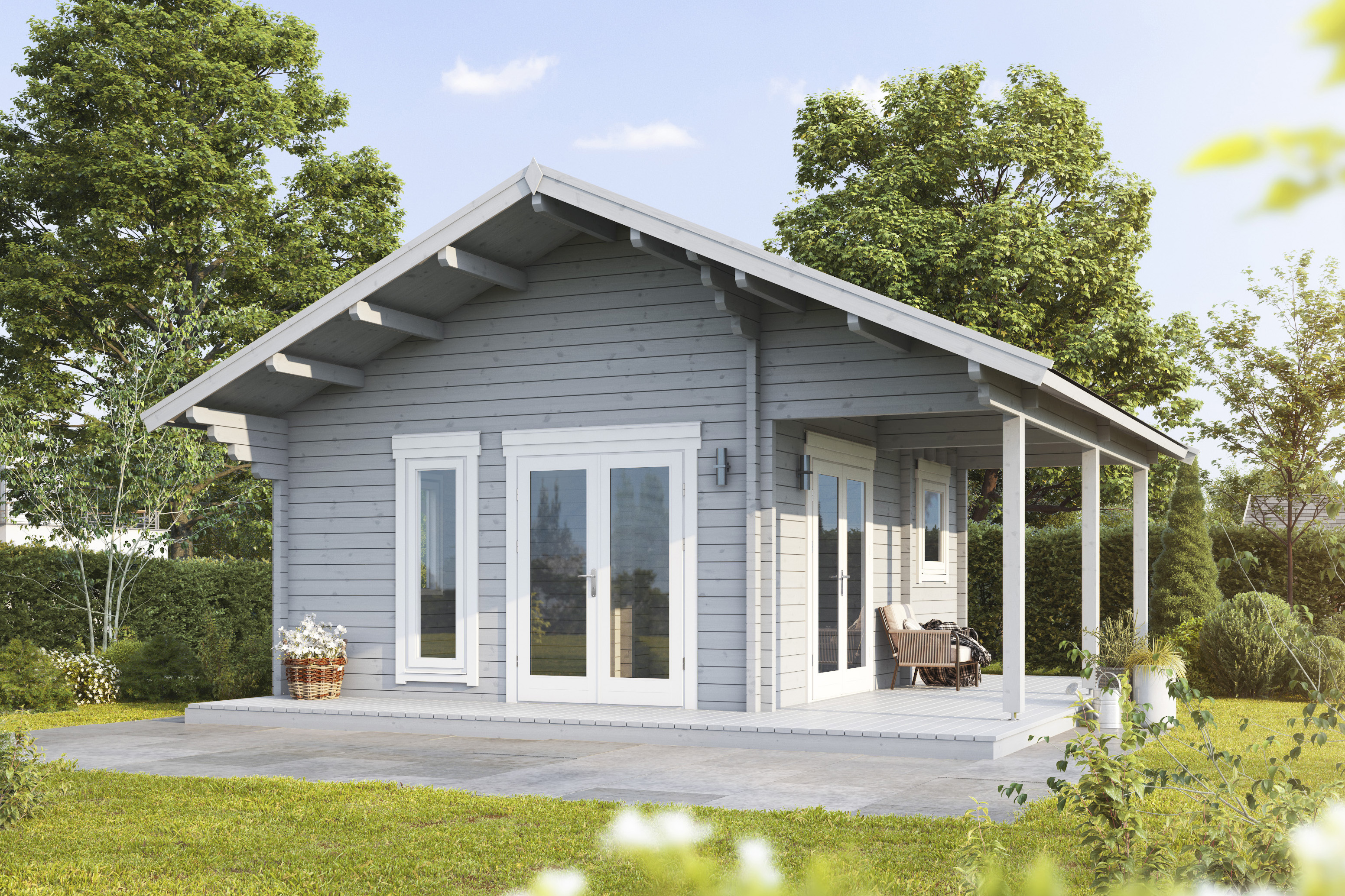 Chillen, Grillen, Arbeiten, Feiern, Kaffeetrinken – alles möglich mit diesem Ferienhaus aus Holz.