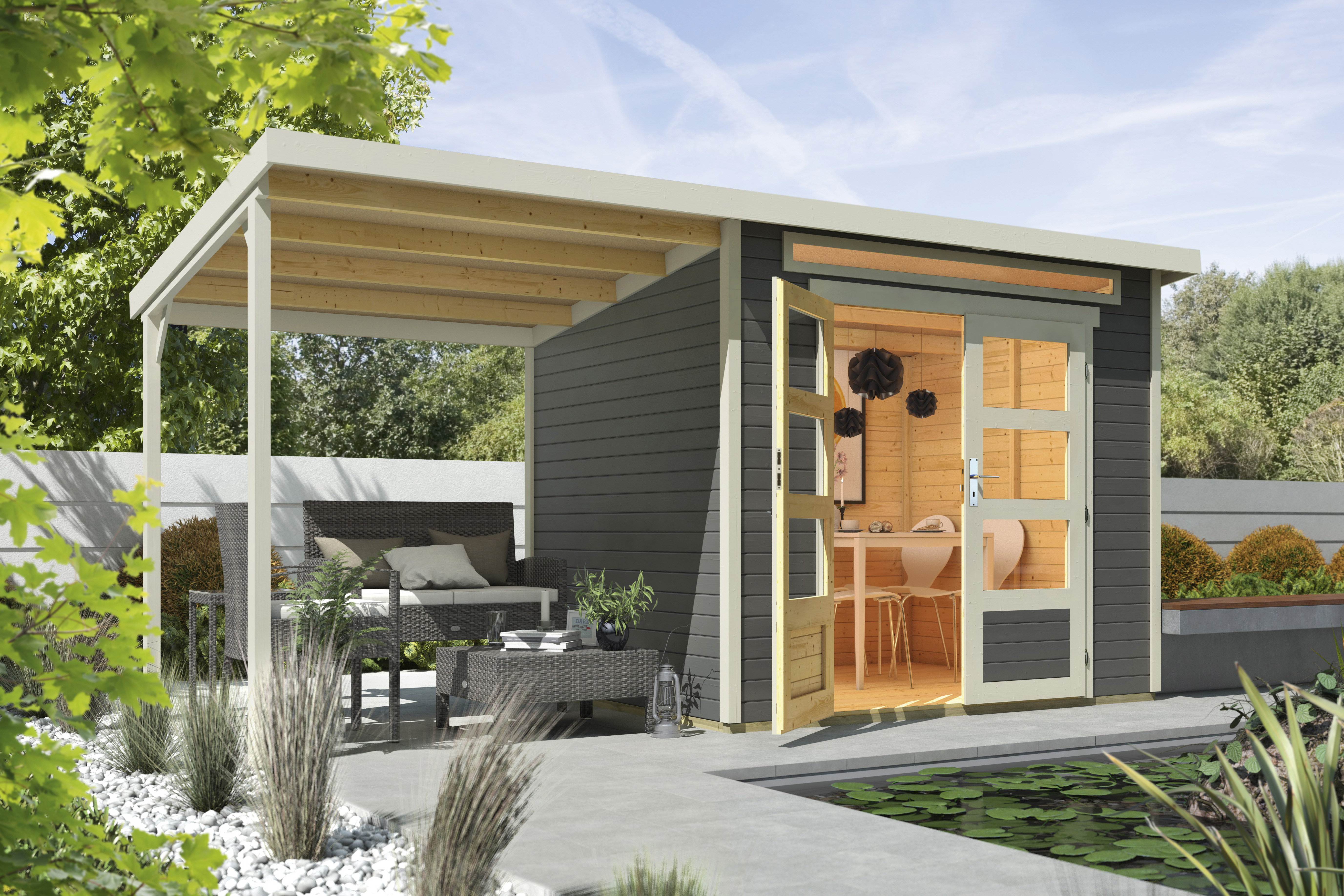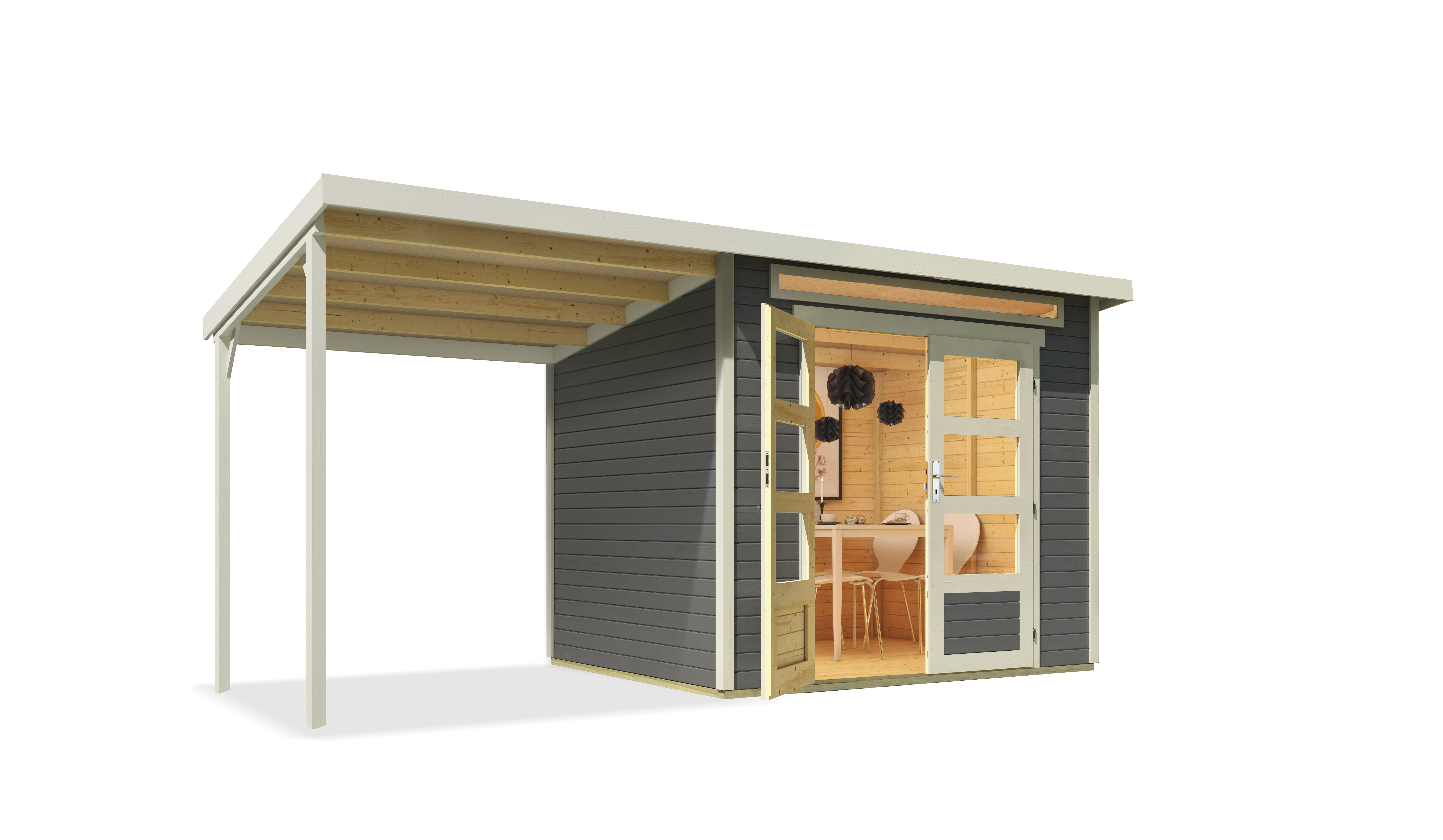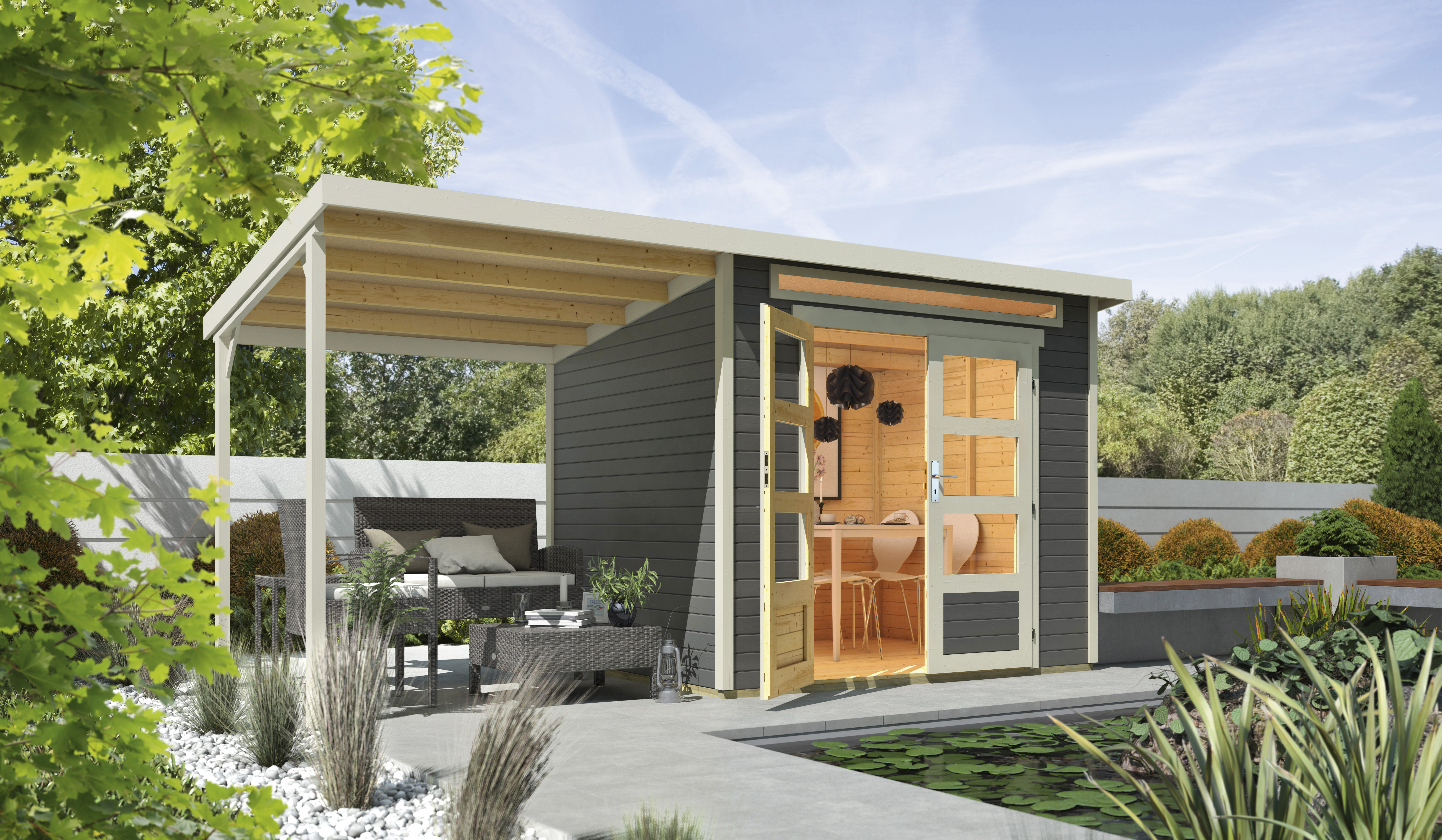 Sie möchten Ihr Gartenhaus nicht nur als solches nutzen – sondern dort auch lange Sommerabende maximal genießen? Dann schauen Sie sich dieses Gartenhaus einmal genauer an. Es bietet Ihnen nicht nur jede Menge Stauraum. Dank des Seitendachs sind Sie auch geschützt vor Sonne und Regen. Durch die großzügige Doppeltür kann wertvolles Tageslicht in den Raum gelangen. Selbst sperrige Gegenstände passen problemlos durch die breite Tür. Außerdem überzeugt die Optik: Das Seitendach im dezenten Elfenbeinfarbton ist perfekt auf das titangraue Gartenhaus abgestimmt und sorgt für einen bewussten Kontrast. Genießen Sie Ihren Garten neu mit dem Gartenhaus!