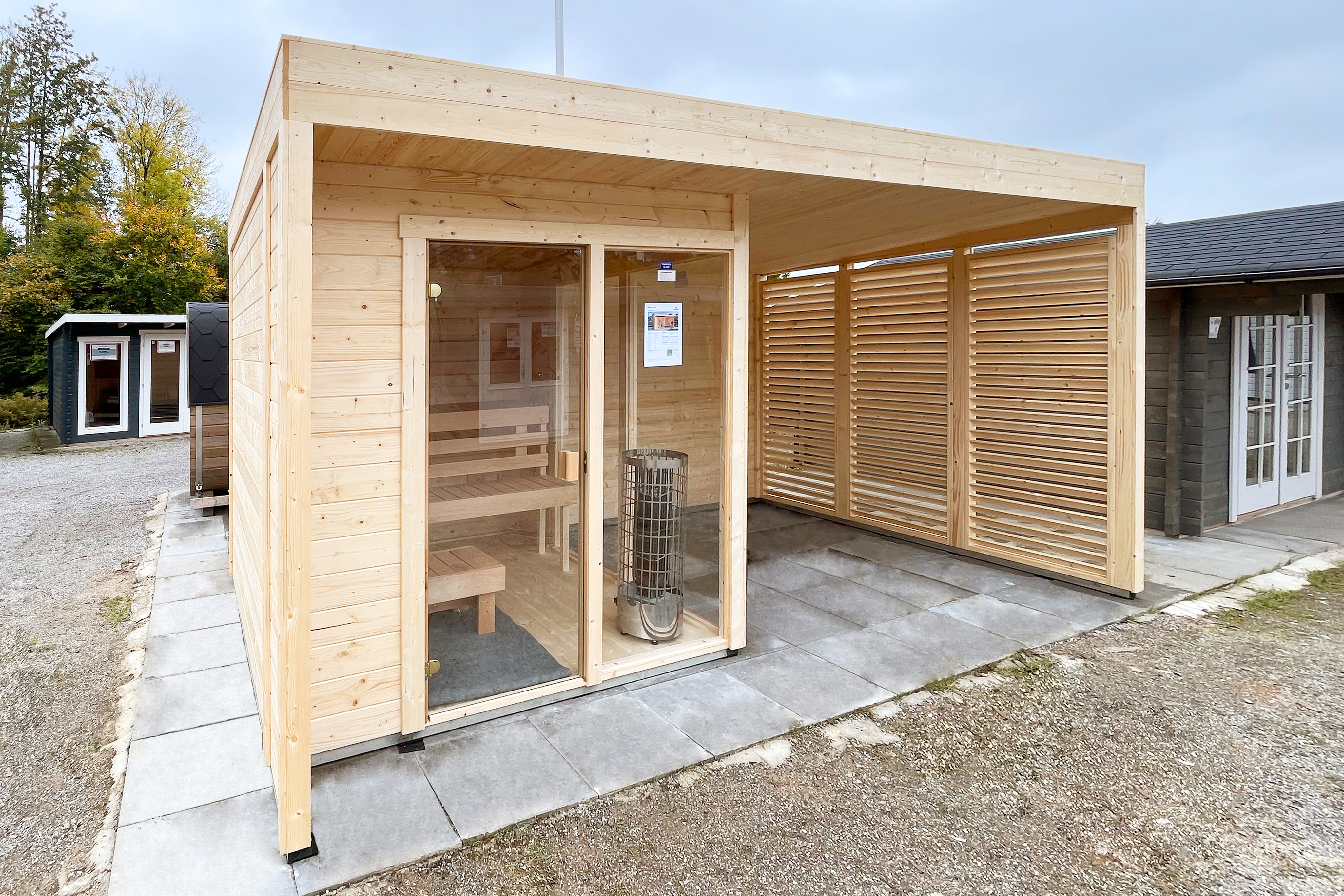 Mit diesem Saunahaus schaffen Sie sich Ihre ganz persönliche Wohlfühloase im Garten. Auf rund 4,5 m² genießen Sie die wohltuende Wärme in moderner Atmosphäre. Große Glaselemente lassen viel Tageslicht hinein und eröffnen Ihnen gleichzeitig den Blick ins Grüne – so wird jedes Saunabad zum entspannten Naturerlebnis.