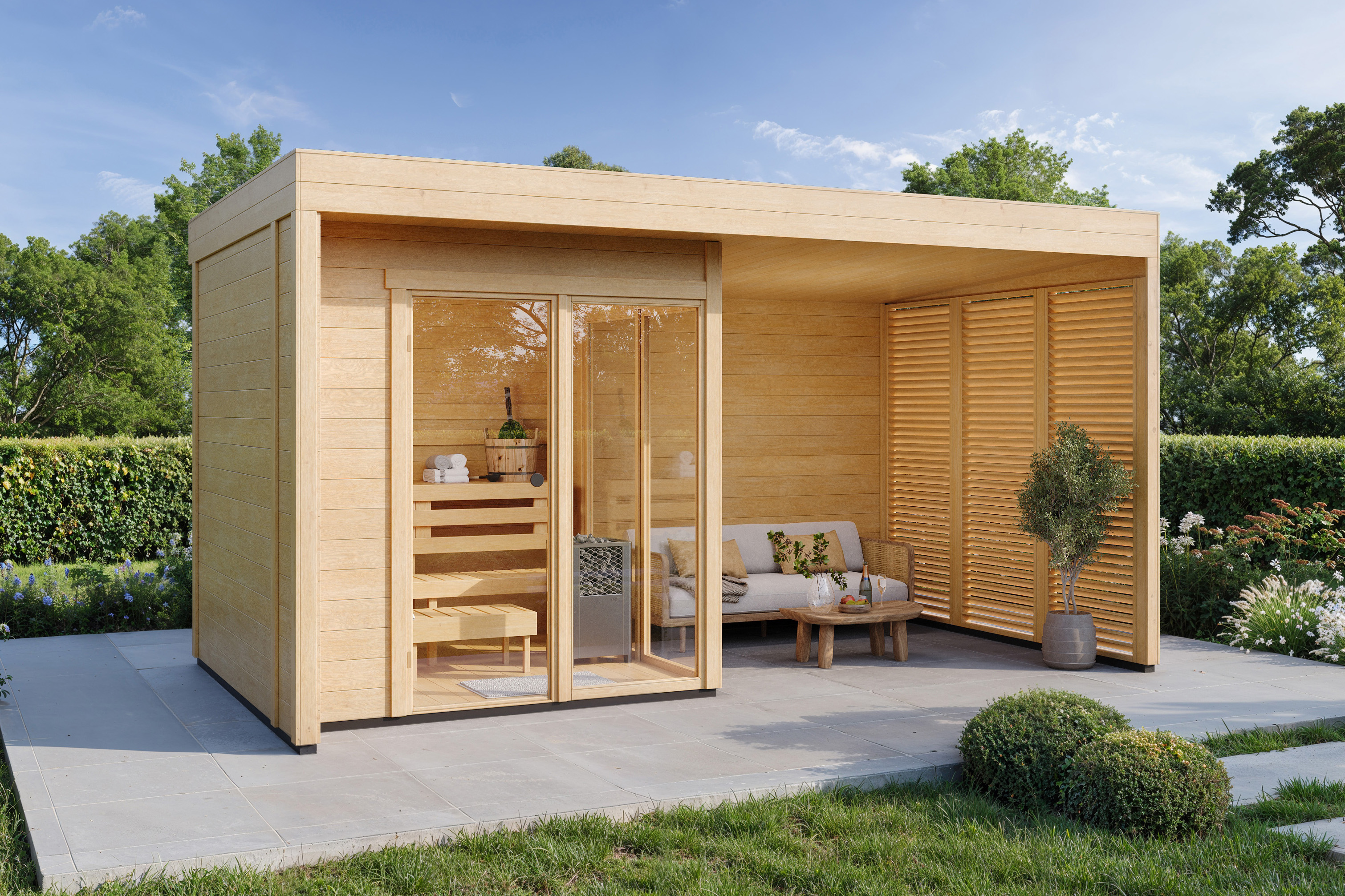 Kompakt, elegant und durchdacht gestaltet, passt das Saunahaus perfekt in unterschiedliche Gartenkonzepte. Es bietet Ihnen einen Rückzugsort, an dem Sie Körper und Geist zur Ruhe bringen und Ihre Auszeiten ganz bewusst genießen können.
